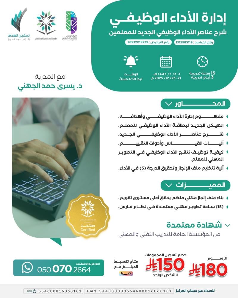 تمكين الهدف لتسويق التدريب والخدمات الإدارية، في عصر التنوّع وارتفاع الذائقة الفكرية والمهارية والبصرية، نؤمن بأن التسويق الذكي مزيجُ خبرةٍ وذكاءٍ ولمساتٍ وفنٍّ، لذا نحن هنا في خدمتكم.