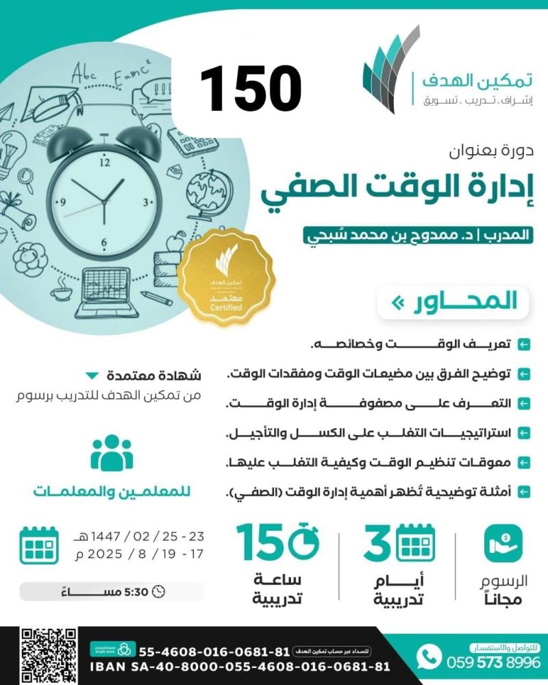 تمكين الهدف لتسويق التدريب والخدمات الإدارية، في عصر التنوّع وارتفاع الذائقة الفكرية والمهارية والبصرية، نؤمن بأن التسويق الذكي مزيجُ خبرةٍ وذكاءٍ ولمساتٍ وفنٍّ، لذا نحن هنا في خدمتكم.