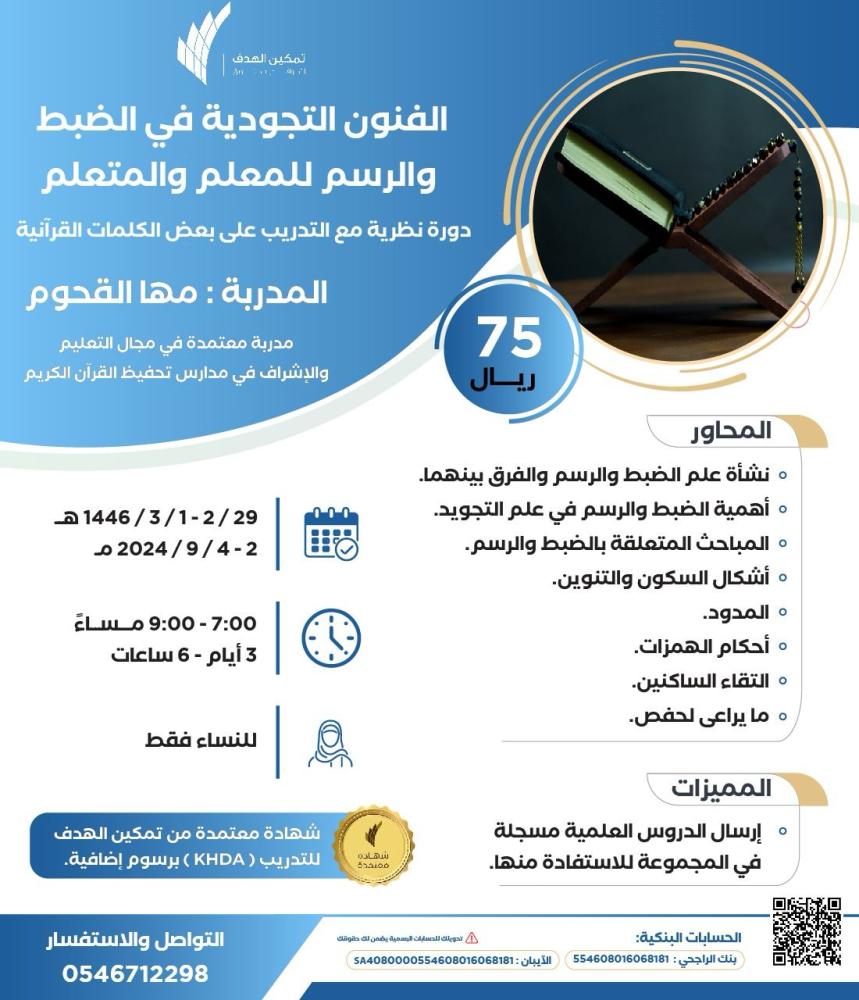 -شهادة معتمدة من تمكين الهدف للتدريب(KHDA)برسوم إضافية.