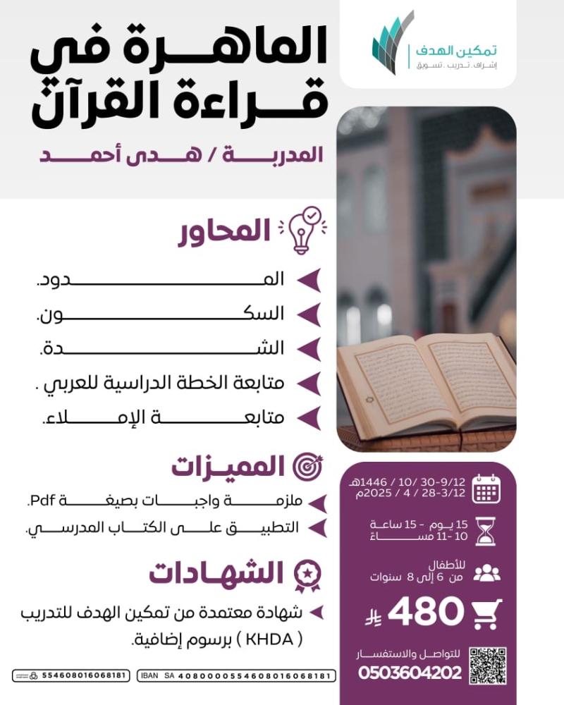 -شهادة معتمدة من تمكين الهدف للتدريب(KHDA)برسوم إضافية.