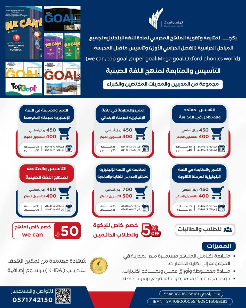 -شهادة معتمدة من تمكين الهدف للتدريب(KHDA)برسوم إضافية.