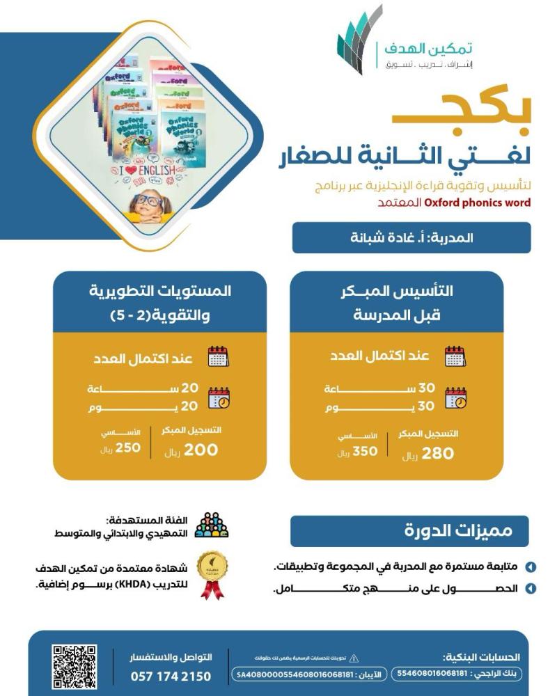 -شهادة معتمدة من تمكين الهدف للتدريب(KHDA)برسوم إضافية.