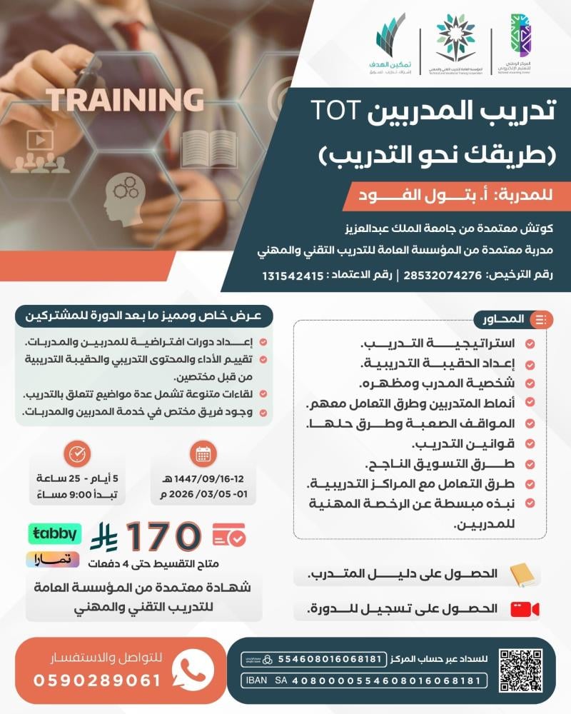 تدريب المدربين TOT(طريقك نحو التدريب)