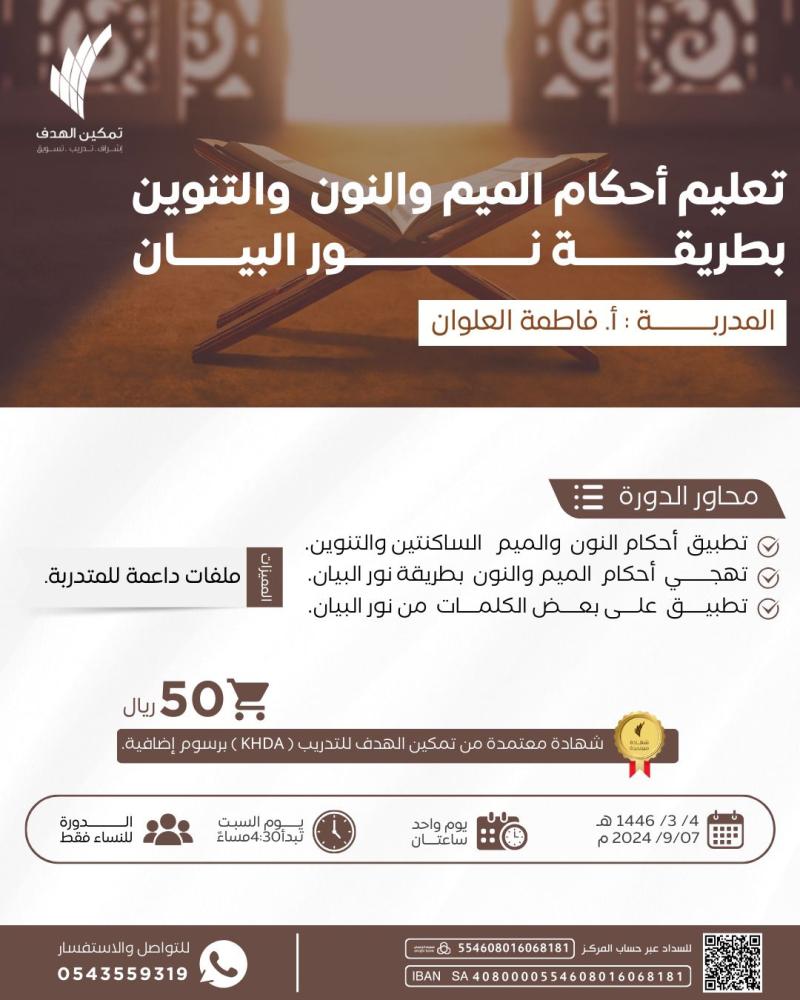 تعليم أحكام الميم والنون والتنوين بطريقة نور البيان