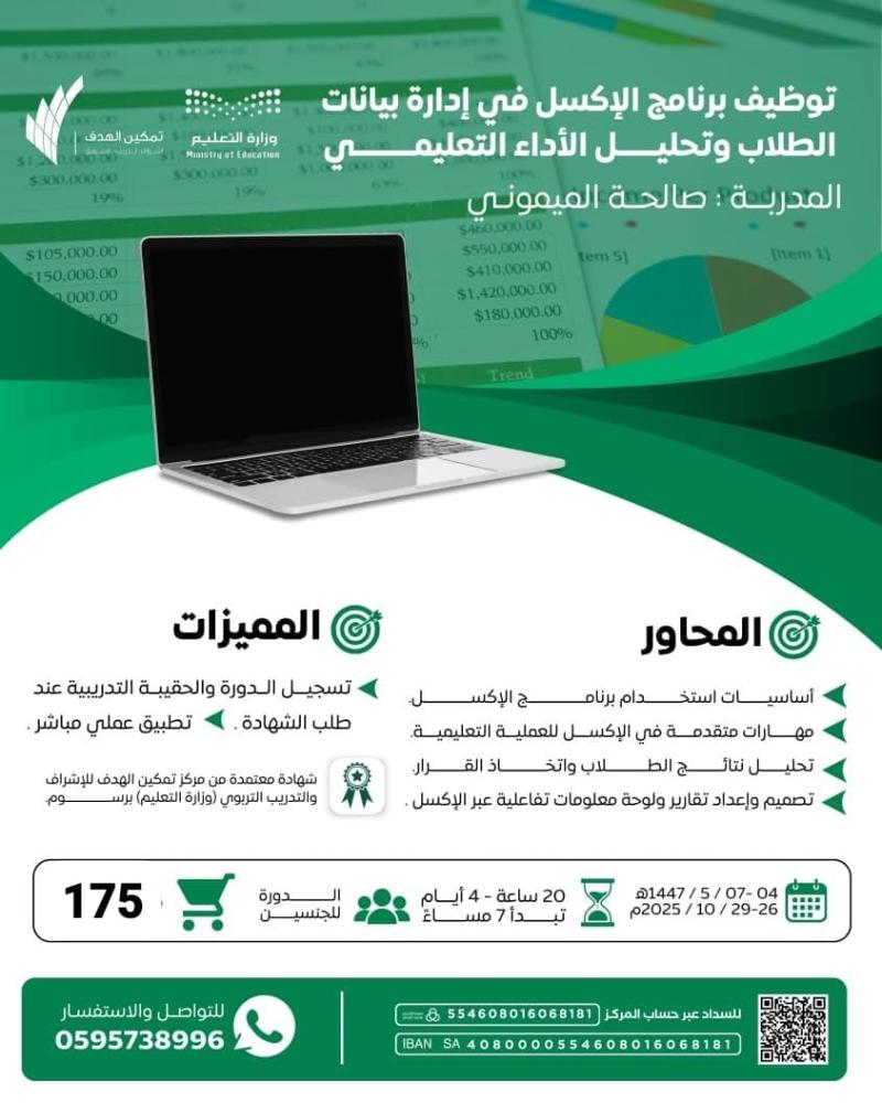 تمكين الهدف لتسويق التدريب والخدمات الإدارية، في عصر التنوّع وارتفاع الذائقة الفكرية والمهارية والبصرية، نؤمن بأن التسويق الذكي مزيجُ خبرةٍ وذكاءٍ ولمساتٍ وفنٍّ، لذا نحن هنا في خدمتكم.