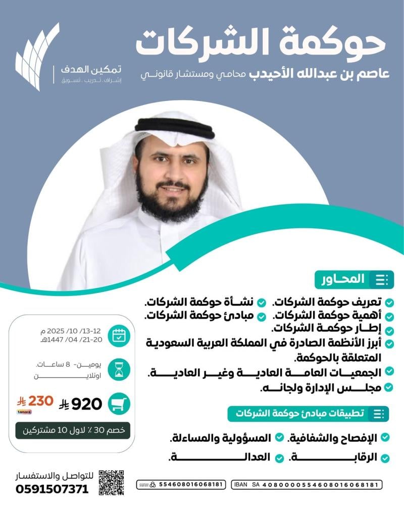 تمكين الهدف لتسويق التدريب والخدمات الإدارية، في عصر التنوّع وارتفاع الذائقة الفكرية والمهارية والبصرية، نؤمن بأن التسويق الذكي مزيجُ خبرةٍ وذكاءٍ ولمساتٍ وفنٍّ، لذا نحن هنا في خدمتكم.