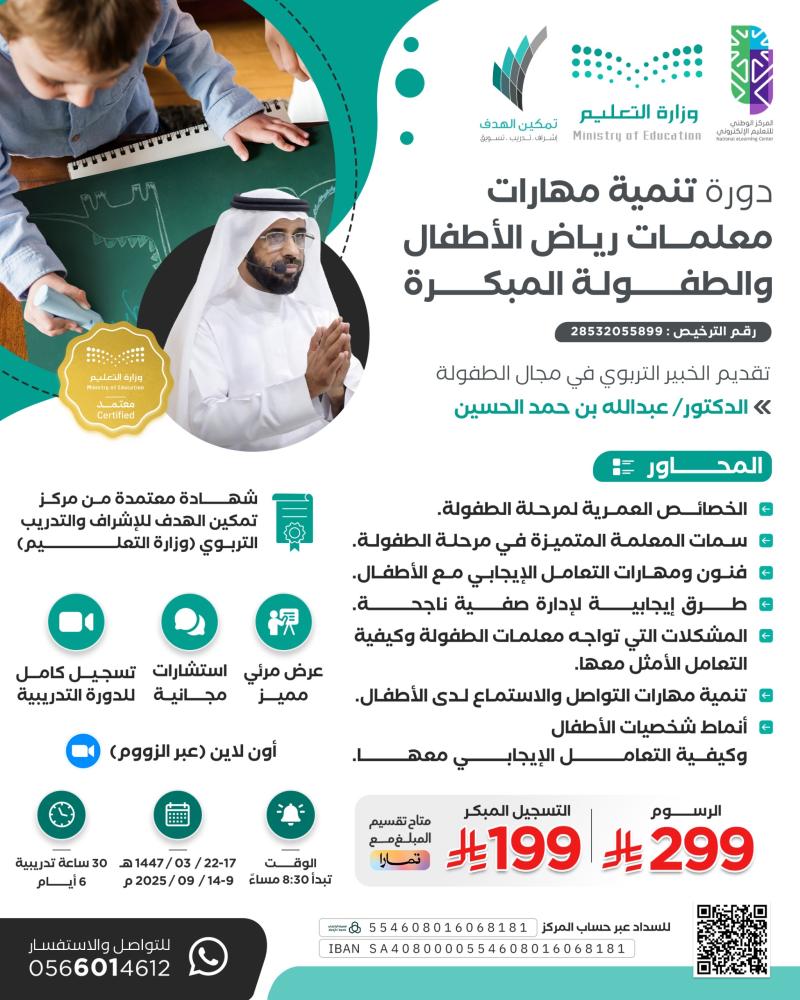 دورة تنمية مهارات معلمات رياض الأطفال والطفولة المبكرة