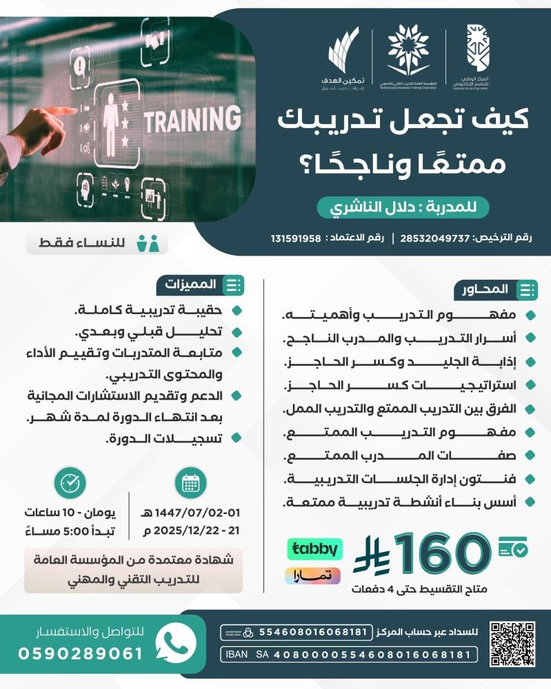تمكين الهدف لتسويق التدريب والخدمات الإدارية، في عصر التنوّع وارتفاع الذائقة الفكرية والمهارية والبصرية، نؤمن بأن التسويق الذكي مزيجُ خبرةٍ وذكاءٍ ولمساتٍ وفنٍّ، لذا نحن هنا في خدمتكم.