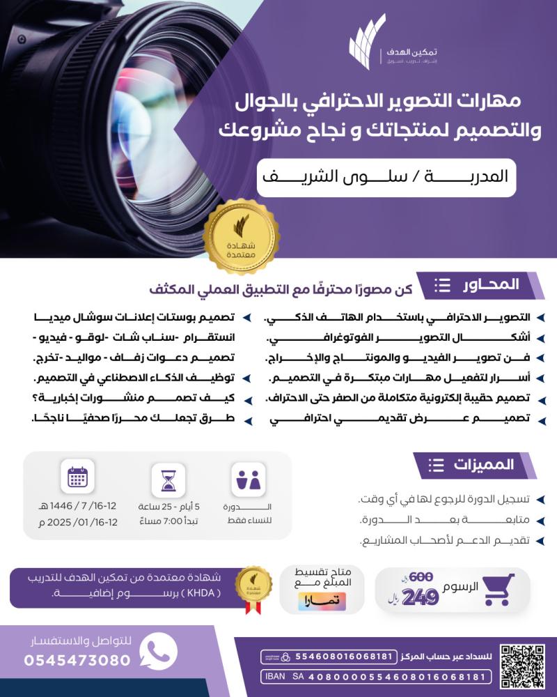 -شهادة معتمدة من تمكين الهدف للتدريب(KHDA)برسوم إضافية.
