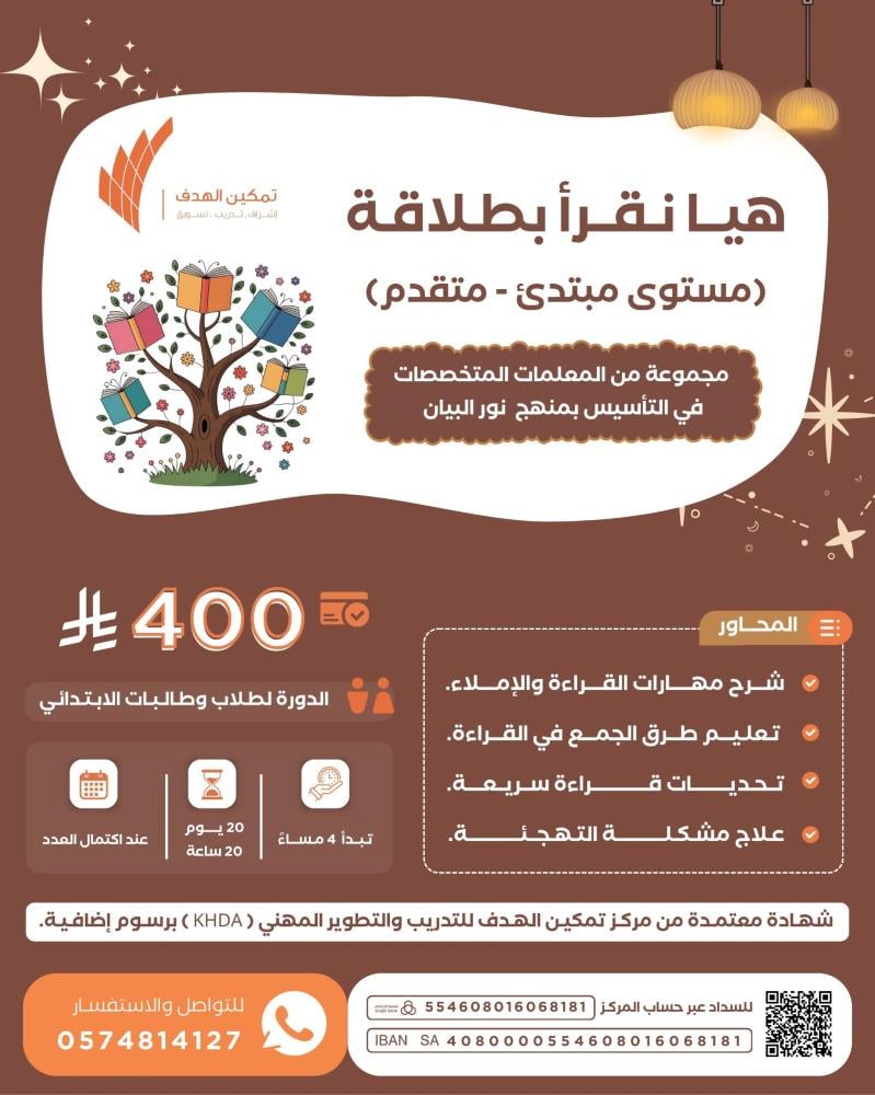تمكين الهدف لتسويق التدريب والخدمات الإدارية، في عصر التنوّع وارتفاع الذائقة الفكرية والمهارية والبصرية، نؤمن بأن التسويق الذكي مزيجُ خبرةٍ وذكاءٍ ولمساتٍ وفنٍّ، لذا نحن هنا في خدمتكم.