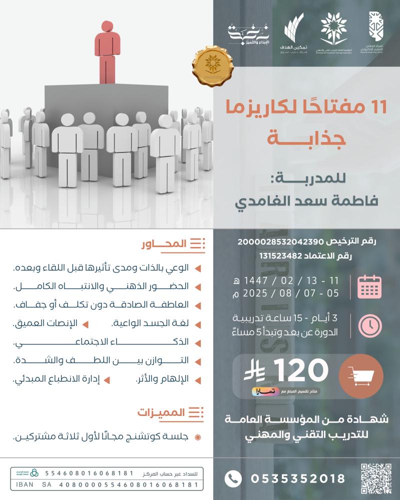 تمكين الهدف لتسويق التدريب والخدمات الإدارية، في عصر التنوّع وارتفاع الذائقة الفكرية والمهارية والبصرية، نؤمن بأن التسويق الذكي مزيجُ خبرةٍ وذكاءٍ ولمساتٍ وفنٍّ، لذا نحن هنا في خدمتكم.